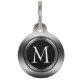 Elegant monogrammed metallic silver-grey and black circles. On the other side are the name and phone number