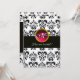 BLACK AND SILVER DAMASK MONOGRAM,red ruby white Invitation