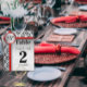Monogram Black and White Heart Damask with Red Trim Wedding Tabletop Signs Table Number