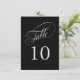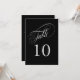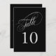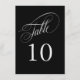 An elegant table number card in black with silver text featuring beautiful calligraphy script text. This design in the 4 1/2-inch by 6 1/2-inch size is a wonderful choice for weddings, banquets, dinners, luncheons, and parties that use black and silver in the colour scheme. To create table numbers for each table, personalise a single card for Table 1 and add to cart, then personalise a table card for Table 2 and add to cart, and so on until you have a card for each table.