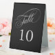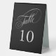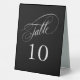 An elegant table number tent sign in black with silver text featuring beautiful calligraphy script text. This design is a wonderful choice for weddings, banquets, dinners, luncheons, and parties that use black and silver in the colour scheme. To create table numbers for each table, personalise a single tent sign for Table 1 and add to cart, then personalise a tent sign for Table 2 and add to cart, and so on until you have a tent sign for each table.