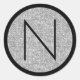 Silver glitter photo circle against a black background. These custom bling stickers are available in a variety of shapes, and you can change the size of or move the monogram mandala around to work for your choice. You can change the font style and size as needed to create your own personalised monogram. Right now it is a simple black and silvery glitter design, but you can customise the background and font colour to create your own unique gift. Note: The design is created with a bokeh texture photo rather than actual specks of glitter.