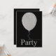 This simple but glamourous party invitation features a black background with a large, faux silver glitter party balloon placed in the centre. The phrase "we're having a " is printed in the bottom portion of the invite in an elegant grey font, followed by the word "Party" printed in a faux silver glitter. The back of the invitation features the same black background along with all of the party or event info printed in a pale grey font. You can personalise this invite to include your own name, or the name of the guest of honour and location of the party.