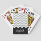 Black and Silver Glitter Print Chevron and Name Playing Cards