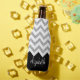 Black and Silver Glitter Print Chevrons and Name Bottle Cooler