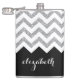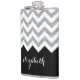 Black and Silver Glitter Print Chevrons and Name Hip Flask