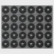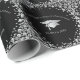 This modern design features a graduation hat and confetti in silver on a background of black with white text.