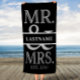 Black and Silver Mr. Mrs. Personalised Beach Towel