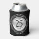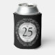 Black And Silver Swirls Circle Frame 25th Wedding Can Cooler