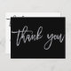 Black wedding Thank you postcards (horizontal) with silver glitter effect (faux, printed as an image) custom text, printed on white background
