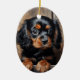 The image depicts Cavalier King Charles Spaniel puppy with black and tan fur. Cavie is sitting in a row, looking directly at the viewer. The puppy have large, expressive eyes and fluffy ears. The background is a soft, blurred brown, creating a warm and inviting atmosphere. The painting style is realistic, capturing the details of the puppys' fur and features.