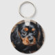 The image depicts Cavalier King Charles Spaniel puppy with black and tan fur. Cavie is sitting in a row, looking directly at the viewer. The puppy have large, expressive eyes and fluffy ears. The background is a soft, blurred brown, creating a warm and inviting atmosphere. The painting style is realistic, capturing the details of the puppys' fur and features.