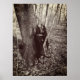 This poster features a black and white photo of black and tan coon hounds treeing.