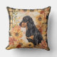 Black and Tan Coonhoun Dog Fall Watercolor Flowers Cushion