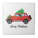 Black and Tan Coonhound Driving Christmas Car Ceramic Tile
