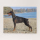 Black and Tan Doberman Pinscher on the shoreline Jigsaw Puzzle