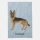 Black And Tan German Shepherd And Custom Name Blue Tea Towel