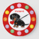 Unique and funny Dog Art painted by Naomi Ochiai from Japan. Cute and Funny Dachshund cartoon gift items for Dachshund fans!! An adorable Black and Tan Smooth Haired Doxie puppy is feeling happy with a tiny heart in his/her mouth. You can customise text and more! Good for kid's room, too.