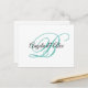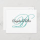 White, teal and black fancy script calligraphy wedding thank you postcard.