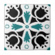 Black and Teal Intricate Floral pattern Ceramic Tile
