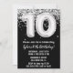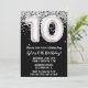 Black and white 10th Birthday party invitation age 10 birthday invitation with black white silver with modern script writing and fun foil balloons.
