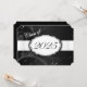 Black and white graduation invitation with light and dark black floral and a white ribbon going across showing the year of graduation. The back of the card is black with white font for people to fill in the graduation announcements.
