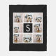 Black and White 8 Photo Collage Custom Monogram Fleece Blanket