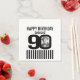 Nintieth birthday photo napkins in simple black and white with stripes. Great idea for adding some fun to a 90th birthday party. Personalise with your own photo in the 0 of 90. Reads Happy Birthday 90. Graphics by Sarah Trett.
