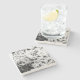 The coasters are gorgeous, a quality feel and heavy weight. They look like a precious archeological find. A rustic stone juxtaposed with a modern floral black and white print. I like the way the print goes slightly imperfect on the cut stone edges giving them a kind-of natural beauty.