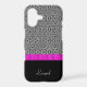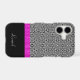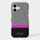 The abstract black and white optical design on the upper two thirds of this case, paired with the black bottom third and a bright pink ribbon separating the two makes a uniquely elegant case! Add your own name as personalisation, and the package is complete. **Please note: the image is printed on the case and contains no actual fabric or ribbon.**
