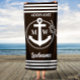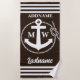 Black and white anchor with rope and stripes border, custom monogram, name and last name beach towel.