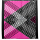 Black and white and grey intertwined stripes on a pink background