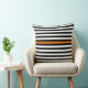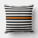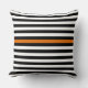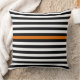 On trend for the season, this gorgeous pillow is patterned in shades of bold black and vibrant white with one bright orange stripe in the centre. Classic narrow striped pattern offers a fresh contrast to the ultra modern colour palate. Comfy, stylish, trendy, can be used indoors or outdoors.