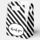 Bold black and white angled striped pattern for thank you to guests.
