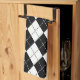 Custom kitchen towel with black and white argyle pattern. A great match for modern and retro kitchen decor