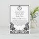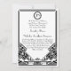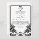 A classically beautiful, elegant and vintage style wedding invitation with a 1920's "The Great Gatsby" theme in simple black and white. An intricate geometrical Art Deco aesthetic border with clean lines and curves. The Bride's monogram and the Groom's monogram are accentuated on this version by enclosing them within a double circular frame.