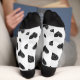 Here’s a pair of socks with an Art Deco look. The bottom pattern features a white background with a black, heart pattern. The black band, at the top has a pattern of tiny white hearts.