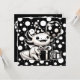 Black and white Axolotl themed kid's birthday party invitations. A cute axolotl in a birthday hat with balloons. Lots of black and white polka dots. Gender-neural! Cute for boys or girls!