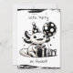Black and white Axolotl themed kid's birthday party invitations. A cute axolotl in a birthday hat with balloons. Lots of black and white polka dots. Gender-neural! Cute for boys or girls!