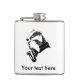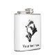 The flask itself is fine. It’s a cheap flask, obviously bought in bulk, however am prepared to overlook that. Given that it is a personalized item, I would have liked to have seen gift boxing instead of the generic packaging. Terrible printing, and/or quality. It’s a cheap, tacky vinyl. It is not cut straight and is also applied in a way that it is overhanging the bottom, causing the glue to catch on items and it will eventually roll and tear, damaging the wrap.