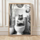 Black and White Bathroom Cat Print, Funny Posters, Poster