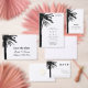 Elegant Black and white beach wedding ceremony service program with chic palm tree silhouette.