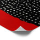 Two stylised bears, one black and one white, embracing each other. The bears are designed with a unique pattern of dots that give them texture and depth. Their faces are centred and lovingly positioned close together, showcasing round ears and softly defined features. The background is a bold red, which creates a striking contrast with the bears. Smaller dots in a lighter hue scatter across the background, adding a whimsical touch to the overall composition. The scene evokes feelings of warmth, unity, and love.