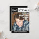 An invitation designed to look like the cover of a magazine is a great way to feature your Bar Mitzvah boy before his special day. Your Bar Mitzvah is a cover boy on this black and white invitation. It is best to use a photo with a dark background, but contact this shop if you need further customisation. We can also add Hebrew names or edit the colour palette, just contact us. Available in alternate colours with options for the Bat Mitzvah.