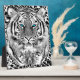 A blue eyes bold wild Tiger face Portrait in black and white Style design. A great gift idea.