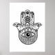 Black and White Line Drawing Boho Hamsa Hand Art. Pretty Boho Inspired Artwork.