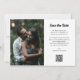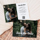 These trendy and vintage style wedding save the date cards feature retro white script on the front as an overlay on your photo. The back has a black and white background, and another photo, along with a scannable QR code to add your wedding website.