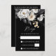 Black and white boho peony flowers dry leaves pampas grass elegant wedding QR Rsvp enclosure card.