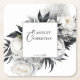Black and white boho peony flowers pampas grass elegant wedding personalised tableware template paper coaster