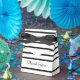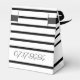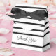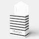 Designer wedding favour guest box with a black ribbon, ribbon colours can be changed, pattern is a modern and bold black and white stripe print. The colours can be changed to any colour to coordinate with your special event theme. Text on both front and back can be personalised to any message, or text is removable.